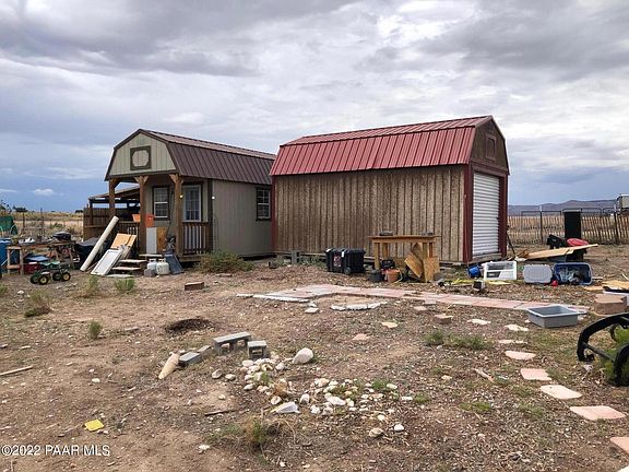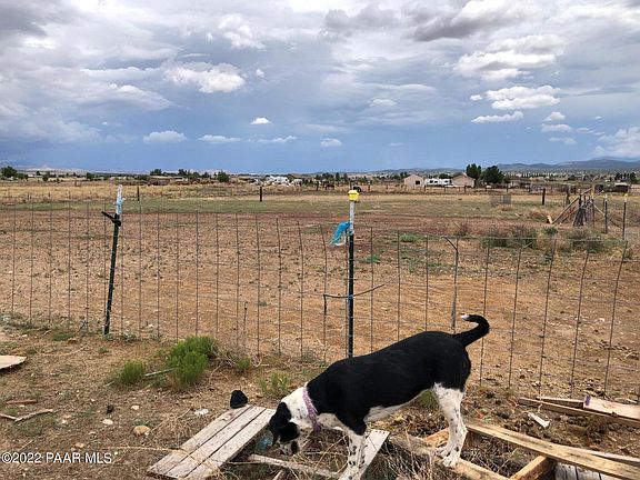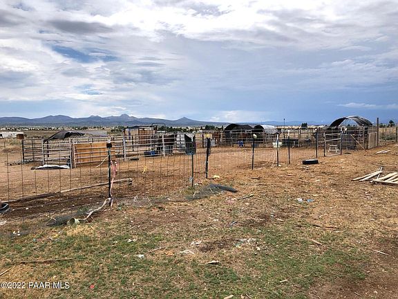 3 bedroom, 2 bathroom home in the country. Views of Granite Mountain and Mingus Mountain. 2 sheds and a tack room. Over 5 acres to let your animals roam. Free standing horse and cattle panels, also chain link dog runs with accompanying gates, and hardware will not convey to buyer.