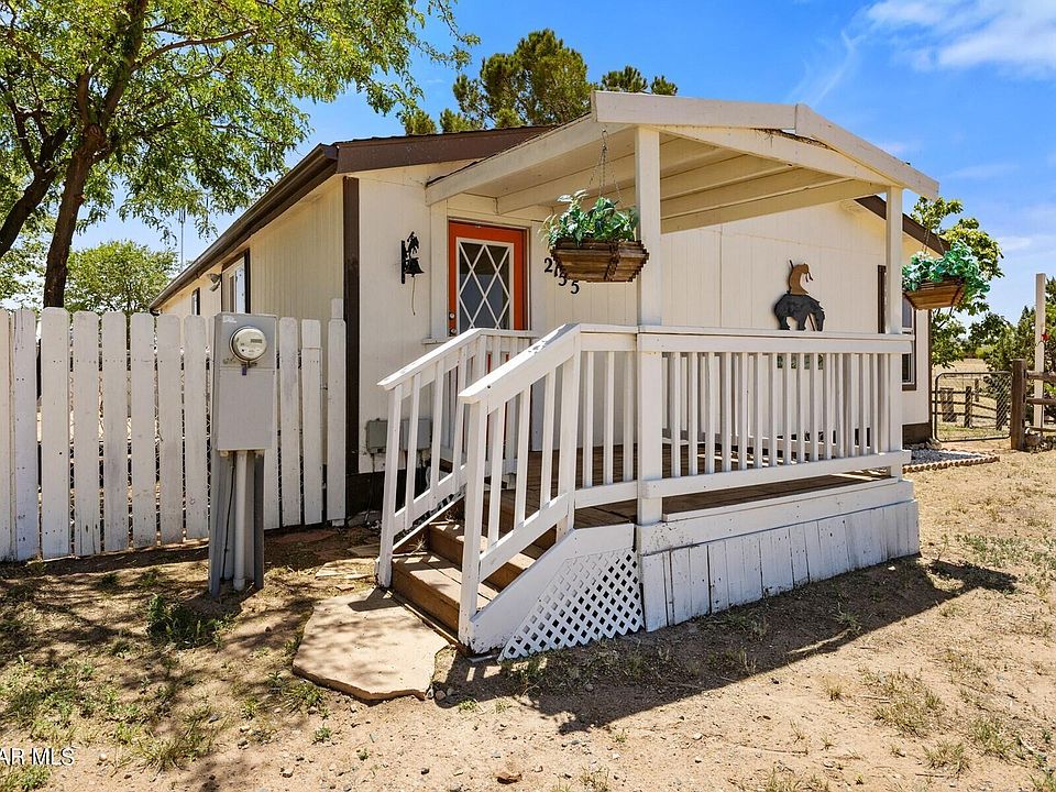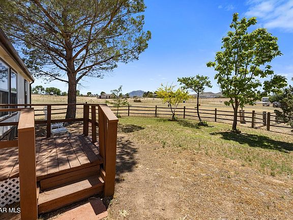 Absolutely charming manufactured home nestled in the serene landscape of Chino Valley! This gem boasts 3 bedrooms, 2 bathrooms, and a sought-after split floorplan, offering both comfort and privacy. Situated on a sprawling 2.38-acre lot, you'll be greeted by adorable decks encircling the home, perfect for enjoying the breathtaking vistas of Granite Mountain and Tabletop.Outside, the property features a host of amenities, including a spacious round pen, a shaded structure for animals, a convenient shed, and a carport, providing ample space for storage and recreational pursuits. Whether you're seeking tranquility amidst nature or a cozy retreat with panoramic views, this property offers the perfect blend of comfort and outdoor living.