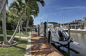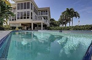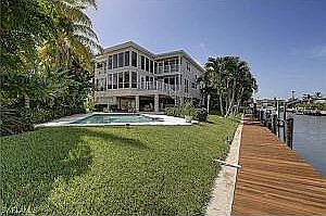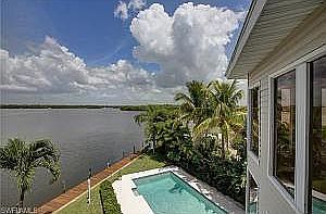 One of the most convenient locations on all of Fort Myers Beach, this custom 5 bdrm paradise home features 140' of canal frontage and spectacular bay views. Walk to the beach, bike to Publix supermarket, and idle only 200 yds to fuel your boat at Snook Bight Marina. This attractive well-built elevated home features 17' ceilings, plenty of large windows to frame water views, storage galore, salt pool, and 3 balconies. Waterfront is for boating, so you will love the wrap-around dock, 10k boat lift, and 130' of dock running almost the entire length of this property. Elevator, 4 car garage (1,708 sq ft), hurricane windows, stucco, new paint inside and out and new metal roof (2015). Complete interior renovation and new upscale appliances (2015). Spa added to saltwater pool.
