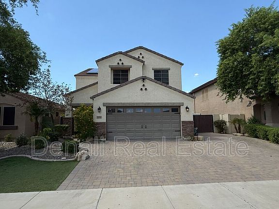 No Application Fees! Beautiful and spacious five bedroom, 2.5 bathroom Sun City home located in the desirable Rio Sierra Crossriver community. This large open floorplan offers great living space including a front living room, extended family room, and an upstairs loft. This home includes numerous upgrades such as wood flooring throughout with carpeting in only two bedrooms, two tone neutral paint, upgraded baseboards, upgraded window blinds, recessed lighting, and ceiling fans in every room. The stunning kitchen features granite countertops, brick backsplash, upgraded cabinets with crown molding, a large island with breakfast bar, separate pantry, and all appliances. One bedroom is located downstairs, while the remaining bedrooms are on the second floor, including the primary suite with a walk-in closet and an upgraded bathroom featuring dual vanities, a garden tub, and separate step-in shower. Expanded laundry room includes a washing machine, dryer, utility sink, and countertop space. A three-car tandem garage with built-in workbench provides excellent parking and storage. Solar, pest control, and landscaping services are included.