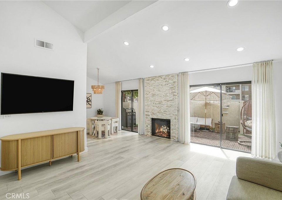 This charming 2-bedroom, 2 Full bathroom townhouse offers 1,054 sq ft of living space with vaulted ceilings and recent upgrades. Features include a remodeled master bathroom, remodeled kitchen and guest bathroom. There is a fireplace in the living room, walk-in closet in the primary bedroom, and an extended large private patio. Attached 2-car garage with Direct Access to the unit with washer and dryer, plus community amenities like a pool, spa, and tennis courts. WARNER WOODLANDS TWO COMMUNITY- Conveniently located near Topanga Mall, The Village, and the 101 Freeway.