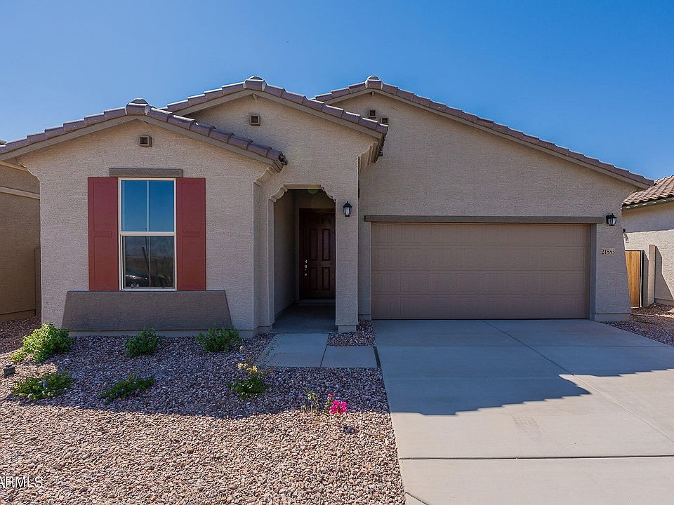 BELOW MARKET INTEREST RATES AVAILABLE! QUICK MOVE-IN It's the very popular Bluebell with 3 bedrooms, 2 baths and a 2 car garage. 12x8 sliding glass door off the great room and leads out to the covered patio. Barnett Linen-off white cabinets with 42'' kitchen uppers, pull out trash drawer with two bins. AZT Silver Falls granite countertops in kitchen with a backsplash and a stainless steel undermount single bowl sink. Upgrade flooring includes EMSER Cabo II 17x17 tile in all areas of the home except beds/closets. Soft water loop, garage service door with garage opener with two controls and so much more. Please verify all information with onsite agent. Thank you!
