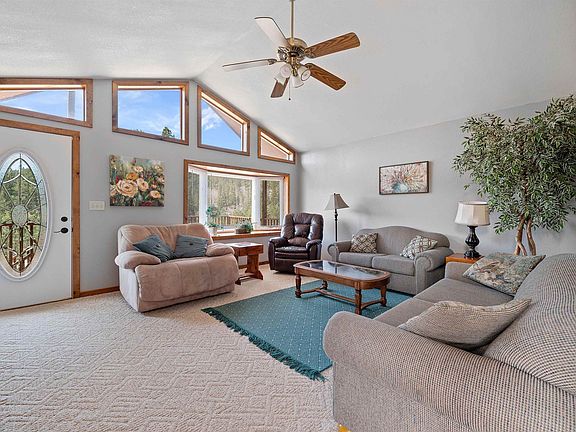 Call or Text Listing Agent - Suzanne Cramer - The Real Estate Center of Spearfish -(605)645-2391 for more information. This turnkey 5-bedroom vacation rental is located minutes from Terry Peak and the Mickelson Trail. 15 minutes to Spearfish Canyon or Deadwood. Located just off Rochford Road. This home features 2 living rooms on the main level with a walk-out to the wraparound deck off the formal living room & one off the dining/kitchen area. The 2nd living room features a stove, gas-log fireplace, vaulted ceilings with floor to ceiling windows that overlook a pond and the thousands of Forest Service acres across the road. The upper level has 3 bedrooms & one full bath. The primary bedroom has a walk-in closet. 2nd bedroom has a hidden access to a loft the kids will love playing in. The lower walk-out level has a game room with another stone gas-log fireplace, 2 more large bedrooms, a bath with a jet tub and laundry. In-floor heat. Water softener & purification system installed 2022. Private well. The 2.08 acres is level with plenty of parking and turn around area for trailers. This is the perfect setting for any event, wedding, family reunions or any large gathering. Covenants are very minimal. Vacation rentals are allowed. Buyer is responsible for verifying all information on this MLS document. Visit http:/www.facebook.com/MountainStreamEstates