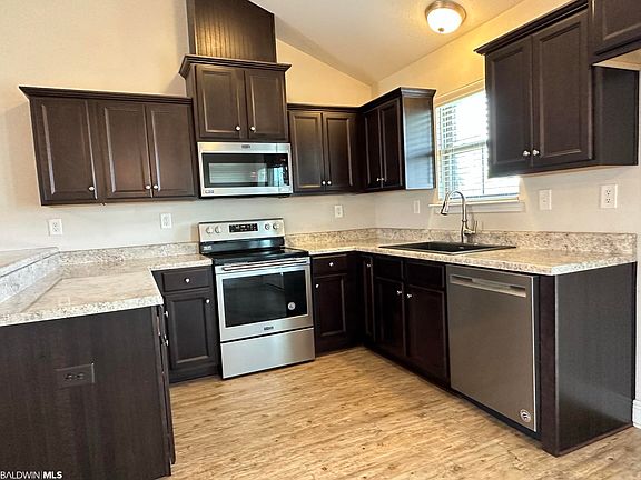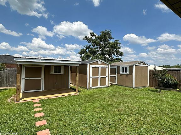 Absolutely immaculate home in Shadowbrook built in 2017. It is adorable inside and out. The split floorplan and totally open living area with vaulted ceilings is the perfect layout for a family. The generous main ensuite has a walk in closet, double vanity, upgraded toilets, beveled mirror and a nice walk in shower. the second and third bedrooms share a bath with a walk in shower and upgraded toilet. The laundry area has a Maytag washer and dryer that come with the home. There is no carpet in this home, it is all luxury vinyl plank. The ceilings are orange peel style with no popcorn anywhere. The kitchen has beautiful cabinets, a farm sink and breakfast bar. There is a large area for dining as well. 2" blinds are throughout. The double garage has motion sensor lights, pull down attic stairs, storage shelves, water heater and a manifold system for the water. The exterior is maintenance free brick and aluminum. The Back Yard is privacy fenced and a garden delight with two rows of white and pink crepe myrtles and fence is lined with plants for your viewing pleasure. THE BEST PART OF THE BACK YARD ARE THE THREE SHEDS FOR BOTH HER AND HIM. THE SOUTHERN ONE IS A SHE SHED WITH AC FOR HER HOBBIES, THE MIDDLE ONE IS FOR YOUR LAWN EQUIPMENT AND STORAGE, THE ONE ON THE NORTH SIDE IS A WORKSHOP FOR HIM.