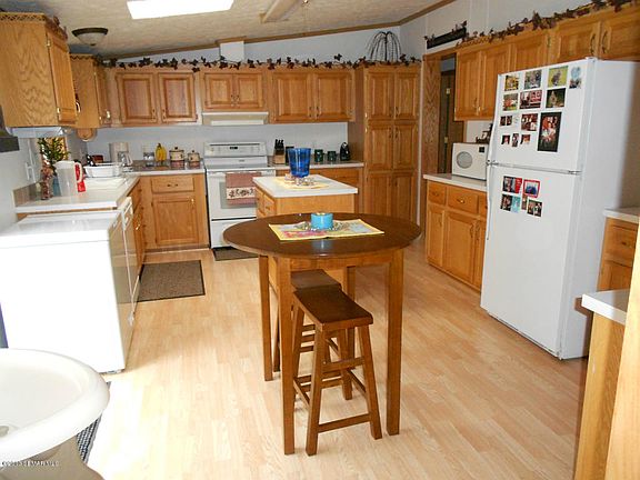 Georgeous setting for this 4.58 acres w/mature trees and wonderful views & scenery. 3 bedrooms, 2 baths, master bath, formal living room & dining room. Kitchen has new counter tops & backsplash. New cedar siding and steel roof on this manufactured home. (2) decks, large private deck on back & covered deck in front. (32x30) shed w/heated shop and double garage.
