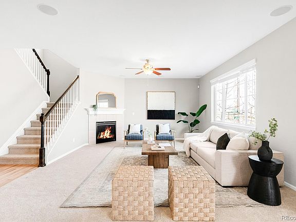 Backing to serene open space, this stunning Copperleaf home offers a bright and inviting escape. A covered front porch leads inside, where natural light from a south-facing orientation pours into an open floorplan. Located off the entry, French doors lead into a private office perfect for work-from-home days. Grounded by a cozy fireplace, a spacious living room offers plenty of space for both relaxing and entertaining. The elegant kitchen boasts stainless steel appliances, rich dark wood cabinetry and a center island, while the sun-drenched dining area showcases vaulted ceilings and a stylish chandelier. Sliding glass doors open to a private backyard with a patio and peaceful views of open space. Upstairs, a versatile loft provides extra living space. Retreat to the primary suite boasting a tranquil five-piece bath. An unfinished basement offers endless potential for customization. With a thoughtful layout and prime location, this home is a perfect blend of comfort and sophistication. The neighborhood provides top-tier amenities: a pool, parks, clubhouse, and year-round events. Unbeatable location— Cherry Creek school district, Southlands dining & shopping is just 7 minutes away, Quincy Reservoir and multiple parks and trails within 10 minutes, and easy commutes: 20 minutes to DTC or DIA, 30 to Downtown Denver. Construction has started on a brand new King Soopers down the street.