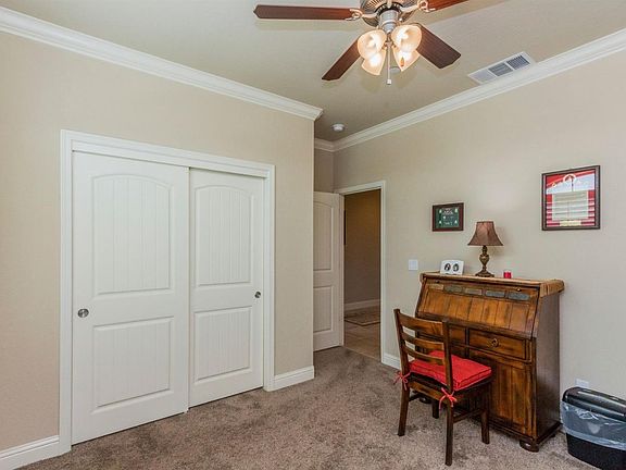You will be amazed when you see this absolutely immaculate Lennar single story home that shows great pride of ownership. This Dutchess Model has the high ceilings complete with added designer crown molding, LED can lighting, and ceiling fans with light fixtures. The open concept kitchen is an entertainer's delight with its granite countertops, tile flooring, island with breakfast bar, large pantry, plenty of cabinets and an area for a large table. Enjoy the open spacious living room that is carpeted and the windows complimented with custom shutters. The large master bedroom features a very large walk-in closet in addition to a beautiful bathroom to enjoy. The fabulous slate covered patio continues along the side and the rear of the home. The back area patio features a lovely pergola. The garage is completely finished and painted as well. This home will delight everyone. Very easy to show.