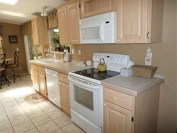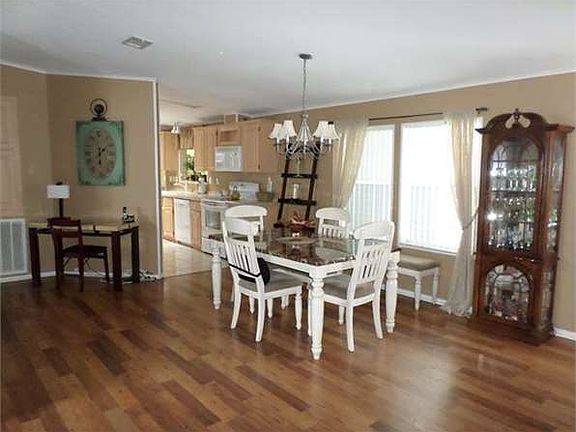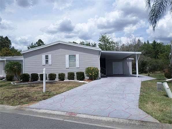 Don't Miss This One !!!! This 2000 Palm Harbor split floor plan offers 3 Bedrooms/2 Baths and 1568 SF of Living Space. Beautiful kitchen with tile floor and breakfast area offers lot of counter/cabinet space. Dining room has laminate flooring. The master bedroom and guest bedroom are really nice sizes and will accommodate king size beds. Rear lanai overlooks a nice wooded lot with plenty of space. The concrete patio is a great place to put your BBQ grill. Over sized shed. House is sold Turn Key with golf cart.