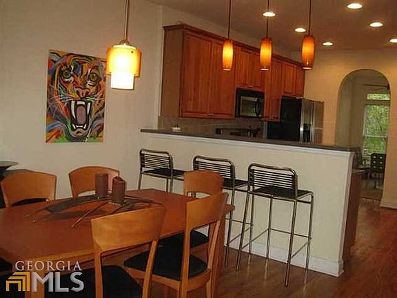 Come see this Very Special Home END UNIT with a tremendous amount of exposure to natural light Small GATED enclave of BRICK town homes in BROOKHAVEN Site finished real OAK hardwood floors Fresh paint & carpet installed 2013 STAINLESS appliances of course Pendant lights over breakfast bar Trey ceilings, recessed lighting, abundant storage closets & cabinets Upstairs-two king sized bedrooms, walk in closets, laundry room Lower level bonus/bedroom/office/rec room & full bath Arched doorways Tall ceilings Transom windows Private Deck Wooded views