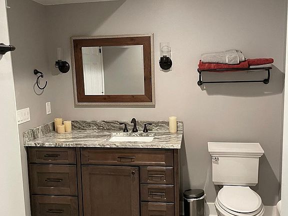 RENT INCLUDES ELECTRICITY, GAS AND WATER. Entire lower 2100 sq. ft. walk-out level of secluded mountain home on 33 acres, with separate driveway and exterior entrance. Rare find in the heart of Clarke County's wine country! This completely private space is newly renovated with enormous kitchen, contemporary open floor plan, spacious rooms and gorgeous finishes. Bar includes wine storage racks, wine refrigerator, drink fridge and ice maker. Both bedrooms have private bathroom access and generous closets; an additional 20' x 13' office/den/theater multipurpose space offers more possibilities. (See floor plan layout in listing images.) Laundry room includes washer and dryer already installed. Located 3 miles from Rt. 50 and 6 miles to Rt. 7, the home provides easy access for commuting and also recreation, situated less than 2 miles from the Shenandoah River and Appalachian Trail. Full use of property included, hunting permissions available upon request. Property is available for rent beginning July 1st. $2300/mo. rental fee includes electricity, gas and water; DishTV possible, please inquire. Internet access is NOT included; best option is cell-based. Owner/landlord occupies upper level of home. Pets considered on a case-by-case basis, please inquire, additional non-refundable pet deposit of $250/pet required. Outdoor smoking only. The driveway is gravel, off of a rural road that is also gravel for approximately 1/8 mile from the driveway to the paved road.