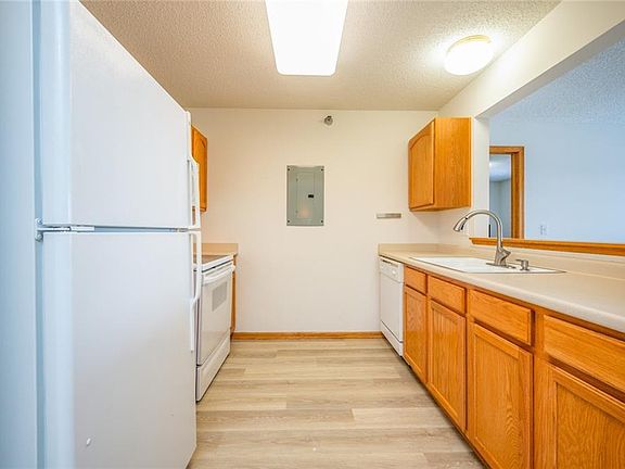 Clive Condo in excellent 'just like new shape' includes all appliances, washer/dryer and comes with an extra large 9 x 11 storage room and 1 car detached garage. Upstairs unit has the best of both worlds with the views, no one above you and best privacy. Catch the great outdoors with a slider leading to a great balcony for sunrises over the green space and large open floor plan with 2 bedrooms and 2 baths. New flooring and paint throughout. Center gas fireplace with transom windows. HOA is well managed and allows for 1 pet <20 lbs.
