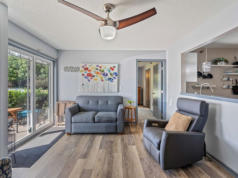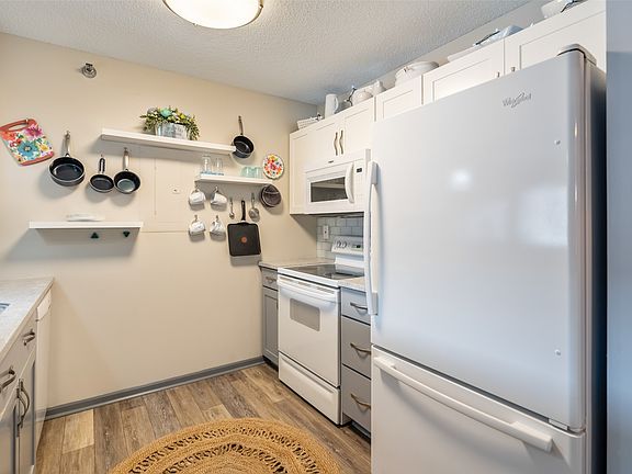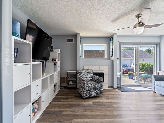 Nestled into the city of Clive amongst parks and walking/biking trails is this 2 bedroom 2 bathroom split floor plan, ground level condo in the Westmont community. Stepping into this home through your private entrance, you’re met with an open living space that’s accented by a gas fireplace. The updated kitchen is clean and modern with new cabinet faces, countertops, sink and faucet. The main living spaces are lined with vinyl plank floors that continue into the nicely sized second bedroom. The primary bedroom has brand new carpet, a large walk-in closet, en-suite with new vanity, sink and faucet and attached laundry with newer washer and dryer. There’s also no need to worry about storage space when you have the largest storage room! Walking back outside your private entrance you’re just steps away from your detached 1 car garage. Don’t let someone else claim this treasure. Schedule your showing today!