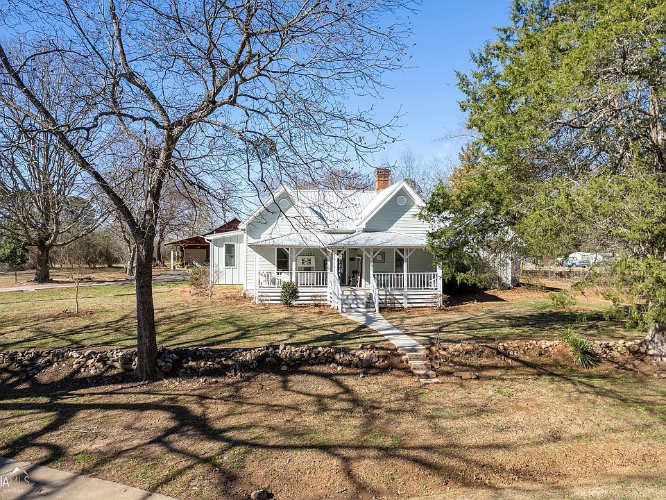 This is a rare find of sprawling land and a beautifully restored farmhouse that looks like it's from an episode on HGTV. From the moment you enter the front door of this 4 bedroom/3 bath ranch home you are greeted with 12' ceilings and tons of natural sunlight from all of the windows in the open floor plan. The kitchen features designer cabinets, subway tile backsplash, quartz countertops, stainless steel appliances and a farmhouse sink. The family room has a gas fireplace, hardwood style floors and a wooden slat ceiling. The master suite has french doors that lead to an outdoor sitting area that's perfect to enjoy morning coffee or quiet time. Master bath includes a soaking tub, tile shower and large walk-in closet. The breezeway from the master suite has built-in desks with granite countertops. There's a Jack & Jill bath located between 2 of the secondary bedrooms and another full bath for guests. Secondary bedrooms feature shiplap walls and large closets. There's an laundry/mudroom with cabinets, quartz countertops and a sink. The back of this home has an attached carport with a cedar vaulted ceiling. This is a perfect place for parking, grilling or entertaining. There's a barn located directly behind the home that is perfect for storing household items and lawn equipment. All of this is perfectly situated on almost 30 acres of land that has peach, apple, pear and pecan trees. Renovations made in 2017 included new metal roof, dual zoned HVAC system, upgraded septic system, new plumbing, new hot water heaters (one in 2017 & one this year) and all new fixtures.