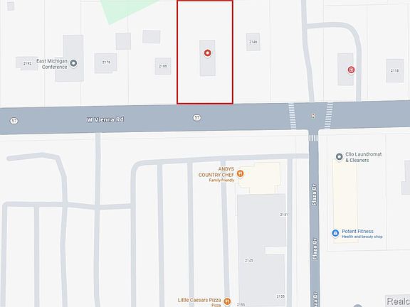 Vacant residential lot with strong redevelopment potential on W Vienna Road in Vienna Township/Clio area. The property offers desirable frontage on a well-travelled corridor with a mix of residential, commercial, and service-oriented uses nearby, providing flexible future development options subject to local zoning and approvals. The parcel is positioned near major roads and convenient access to I-75 corridor development patterns, indicating broader area investment activity and visibility.
