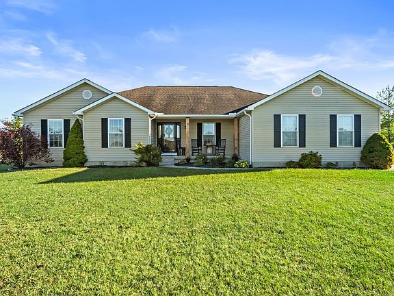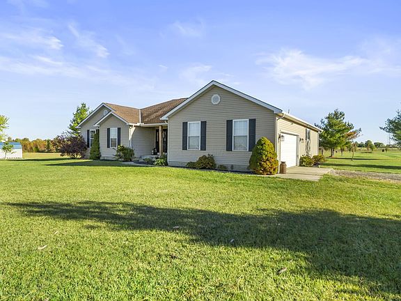 *OPEN HOUSE 12/14 from 11-1PM!* Welcome to this beautiful 3 bed, 2 bath American Heritage custom built ranch! This property is situated on 5 acres just minutes away from Honda & Route 33. Home features gorgeous hardwood flooring in the foyer, office/dining, and kitchen. Spacious great room with new built-in cabinets, shelving, electric fireplace & tray ceiling. Large kitchen w/ granite countertops, SS appliances, island, subway tile, reverse osmosis water filter, new pantry/trash cabinets, & eat-in space. Doors added to office w/built in desk. First floor laundry/mud room updated w/new flooring, cabinetry, and bench. Primary bedroom right off the kitchen w/walk-in closet & en-suite. Primary bath features soaking tub, shower stall, granite countertops, laminate flooring, & linen closet. You will find the other two guest bedrooms and bathroom w/new tile flooring at the other end of the home. Spacious lower level partially finished with laminate flooring and black painted ceiling. Other features include a covered porch w/new wood posts, patio w/new privacy fence, & 24x32 outbuilding, & all new front landscaping. Complete list of updates found in documents.