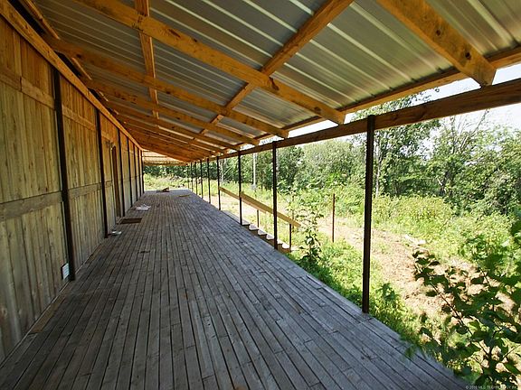 Unique & Spacious Bunk House! 1625 SF, 1 bed, 1 bath home with a huge, gorgeous kitchen w/ 10 ft granite bar & stainless appliances, 8 ft wrap-around covered decks. A wonderful building spot on top terrace w/ water & septic. All on 10 Acres!