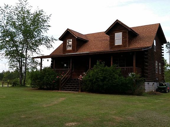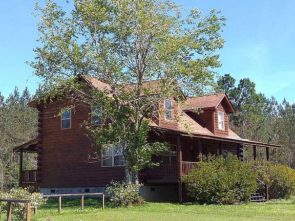 Wonderful, secluded (one neighbor) log cabin on 5.4 acres nestled in and surrounded by wooded acreage (mostly pine). Very quiet and private. All appliances are brand new. Offers two full length decks (front & back). High ceilings, walls and ceilings are finished knotty pine throughout. Two of the four upstairs bedrooms have two small rooms (in each room) with small entry doors for children to play in, store their toys in, have a fort in, storage, etc.. Cabin has a brand new rustic metal shingle roof designed and backed by "Classic Metal Roof Systems" touting up to 34% energy savings. while also carrying a transferrable, lifetime warranty. New 8’x8’x8’ Double door pump house/shed. Truly a wonderful cabin. Brand new A/C systems. (X2)