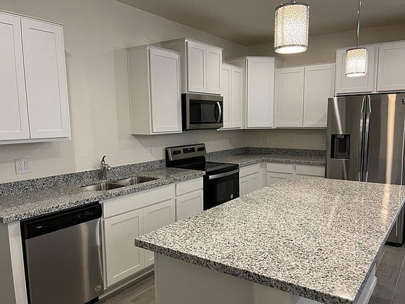 Modern and Slick 3 bed/ 2 bath home built in 2021 in the beautiful Sundance community. This home has three large space bedrooms and a office that may be used a a 4th bedroom. The kitchen comes with stainless appliances, kitchen island, plenty of shelves, and beautiful lighting. Tiled walk in shower in master bath. The open design gives you a comfy living space. Carefree pebble filled backyard. This home is close to I-10, shopping centers along Watson Rd and the Verado district, and public library.
