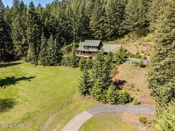 Immaculate Custom-Built Home on Acreage with Expansive Views of Lake Coeur d'Alene! Incredibly Private Setting offers high quality construction, 1.39 acres of mature landscape and wildlife galore, cedar siding, A/C, oversized deck, water feature & enclosed hot tub area, gourmet kitchen w/large island, granite countertops, SS APPS, gorgeous cabinetry, large window capturing surrounding views, vaulted ceiling, floor-to-ceiling stone stacked fireplace, spacious master w/en suite bath, double vanity, walk-in shower & walk-in closet, dedicated laundry/mud room with custom built-ins, oversized 2-car finished garage and asphalt driveway. Enjoy this peaceful and quiet setting with NO rear neighbors and an unbuildable lot in front, truly a rare find! Located up the road from SunUp Bay public boat launch, multiple aware winning golf courses, Black Rock Marina, Shooters Bar & Grill, Lake Coeur d'Alene and 20 minutes to downtown CDA. Here is your perfect North Idaho Retreat!