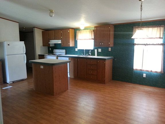 Three bedroom and two bath double wide. Large family room with wood buring fireplace. Central heat and air. Metal roof with covered porch. Two car carport. Large storage building, loafing shed with paddock. Five acres mostly clear from a paved road. Rural water. Nice place.