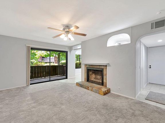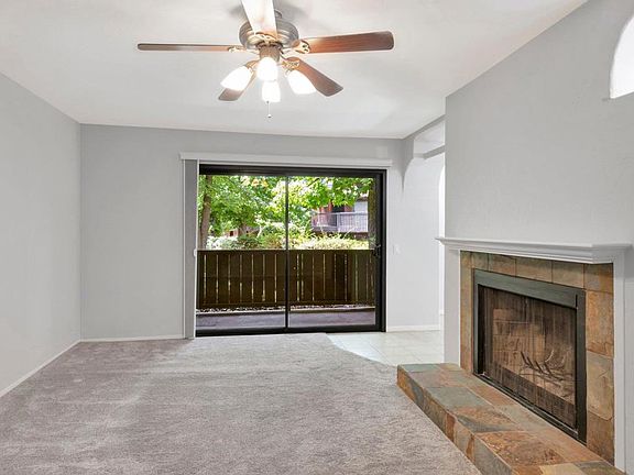VA Welcome! Nestled in the trees, prepare to fall in love with this gorgeous home in the heart of Alpine! This upgraded and updated downstairs single level home is absolutely perfect with 2 large bedrooms, each with a walk in closet, and 2 full baths! The stunning kitchen has just just been updated with stainless steel appliances, new quartz countertops and more! The oversized living room with fireplace is perfect for entertaining and leads to the beautiful patio overlooking mature shaded landscaping! This home also features its own in unit laundry closet (off porch), ceiling fans, fresh paint throughout, central AC, energy efficient LED lighting, and assigned parking! Make sure to check out the gorgeous complex grounds which include spa, pool & clubhouse. Close to shopping, grocery stores, post office, breweries, restaurants and more!!
