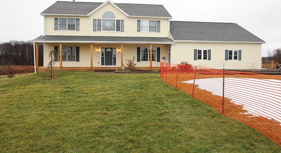 WOW! Secluded 9+ acre setting yet close to Gananda, Penfield and Fairport. 3,000 sq. ft. Open floor plan with heated floors, a 2 sided see through gas fireplace. Beautiful covered front porch! Patio, pool and hot tub and a 6 Car garage with car lift! This is a must see!!