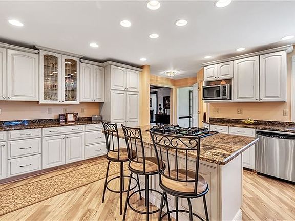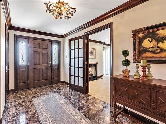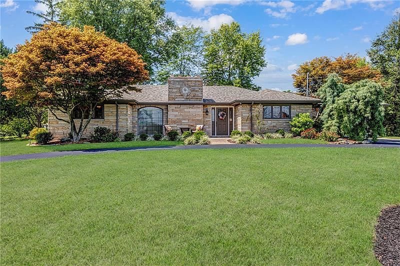 8.93 ACRES! Governors drive introduces idyllic mid-century 4 BR 3.5BA stone ranch spacious in design & rich in detail. Solid construction & classic features such as beautiful woodwork, 3 gas fireplaces & 5 floor to ceiling windows. Main fl includes stunning kitchen w/granite counters, breakfast nook, center island w/seating & SS appliances, familyrm w/soaring ceilings & gas fireplace, livingrm & diningrm w/6 ft windows & hardwood floors under carpet, massive owner's suite w/2 double closets & impressive in-suite bath w/over the top finishes, princess suite w/attached bath, main fl laundry. Open staircase leads to finished lower level w/2 bedrooms, large familyrm w/fireplace & full bath - great for multi-generational living! TWO 2 car attached garages, 26X23 composite deck, 24X18 2 story shed w/electric. Attention to upkeep w/new roof 2021, H2O tank 2020, furnace 2017, AC 2015, sealed driveway 2021. Exposed aggregate sidewalk/patio, lush landscape w/numerous fruit trees, great location.