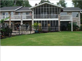 Stunning main channel water view from just about every room in the house. Step out on the upper deck and it gets better because either way you look the view is fantastic. The all brick house is just as grand. You are welcomed by a long circular drive that also extends to the lower level of the house. As soon as you walk in you are wowed by the view. The living room/ dining room have a vaulted ceiling with wood beams, great windows, fireplace and hardwood floors under the carpet. The Kitchen has nook, with a view ,for a table and plenty of cabinets and counter space. At the other end of the house you will find a full bath, laundry room, a bedroom and the master suite. The bedroom and the master suite open out to the deck. The master bath has been totally redone and is handicapped accessible. The other two bedrooms and full bath are downstairs. The downstairs is like a second home. Large living room with fireplace, dining area and a full, remodled kitchen. All this opens out onto the screened-in porch and pool area. There is also an office with its own entrance and drive way. You can access the water from the road and path just below the house. You can not have a dock but you will always have a fabulous view.