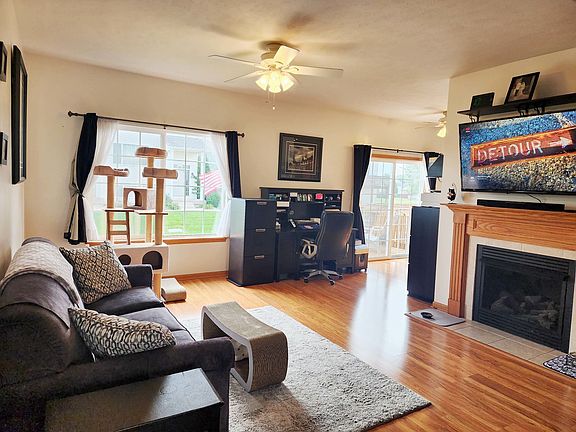 Spacious, open concept with vaulted ceilings, a gas fire place and a deck off of the dining area. 3 bedrooms, 2 1/2 bath 2 story townhouse with a full basement.  Wood laminate floors on the main level and carpet on the 2nd floor.  This is a pet friendly home. The owner installed cat walks, seller's preference is that they  remain. The is a very well maintained home.  No FHA allowed. Cash, VA or Conventional loans only.