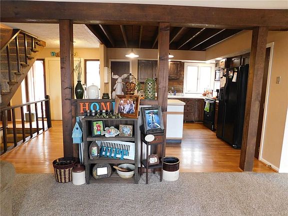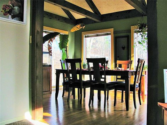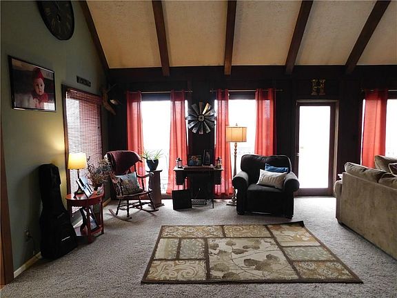 You'll feel right at home as soon as you walk in the door. This cozy 4 bedroom 2.5 bath home has some eye catching features. Snuggle up next to the amazing floor to ceiling stone fireplace. Wood beams stretch across cathedral ceilings for an open concept. Enjoy amazing views from the floor to ceiling windows, the walk out basement, patio or deck and don't forget the breath taking dining room space! View the water in the fall and winter and have peace of mind knowing this is on two wooded lots.