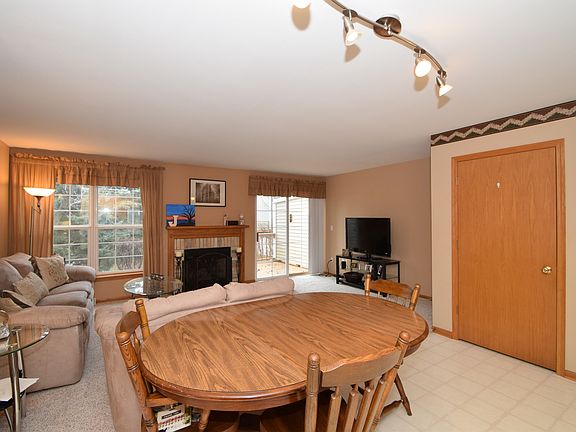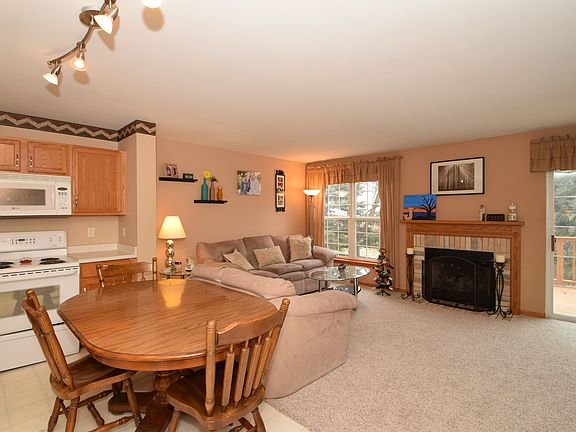 Location! Location! Location! Sought after townhouse-style unit that faces conservancy and common area. Open concept main level offers a large eat-in kitchen and includes appliances. Living Room with new carpet has a natural fireplace and sliding door to private deck. Master bedroom with walk-in closet. Second bedroom with walk-in closet. The finished lower level is an entertainer's delight. Main floor laundry. Private entry. All this in the desirable Woods Edge. See this condo today and you'll want to start packing! Home warranty included!