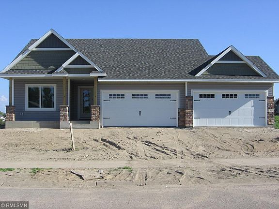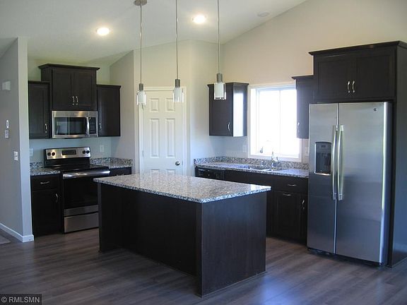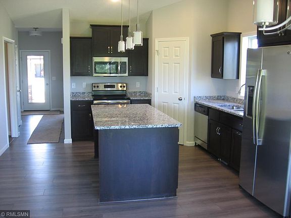 Brand new 3 bedroom 3 bath Rambler Finished up and down, Dark stained cabinets with white enamel woodwork, Granite counter tops, Huge Island in Kitchen with Stainless steel appliances, Fireplace, Double vanity in master bath with tiled walk in shower, Huge mud room off 4 stall garage, walkout basement, Concrete driveway, Ready to move In.