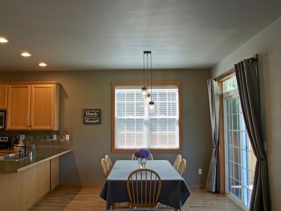 New Lynden Neighborhood! Very pleasant and spacious 2,142sf 3 bed / 2.5 bath home near nature trail and national award winning KOA. Extras include air-conditioning, stainless appliances, bronze lighting and fixtures, floor-to-ceiling stone gas fireplace, high ceilings, large windows, wood blinds, ceiling fans, hi-tech wiring, pet doors, etc. Downstairs includes a spacious entryway, large living room, full kitchen, separate family dining area, large laundry room with double-wide food pantry and sink, a bathroom, closets, and ample storage. Upstairs includes a huge master suite with large walk-in closet and full bathroom with soaker tub/shower and dual sinks, two good sized bedrooms, and an open common area with linen closet and full bathroom.Garage is extra double wide, insolated, painted and includes full windows and a private side entrance. Exterior includes a 3-car aggregate driveway, fully paved double walkways, spacious fully fenced back and side yards, covered trex deck patio with BBQ hookup, power outlets, RV/Boat area, and pet doors.