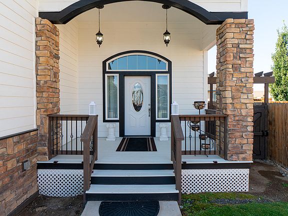 Custom designed, exceptionally well cared for, turn key home inside & out, offering fresh interior and exterior paint, newly replaced light fixtures & door hardware throughout, it also has slab granite counters with granite/tile splash & under mount sinks, central A/C, tile & laminate flooring, gas fireplace, cathedral ceiling in living room, finished garage, fire pit and a large lot offering RV parking, RV hookups and great curb appeal. Conveniently located close to highway & by-pass access, shopping and hospital/medical facilities. HOA fee covers sewer, irrigation water, domestic water and snow removal. HOA fee stated is an average and subject to change depending on water usage, etc.