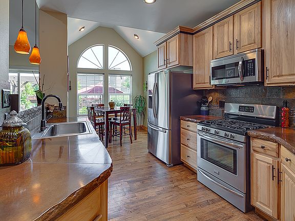 Entertainer's dream in a great NW Redmond neighborhood. Single level, Open, great room layout w/high end finishes & industrial touches. Soaring vaulted ceilings, exposed beams, lg rooms & closets, huge master w/vaulted ceilings, sitting area, double head tiled shower, walk in closet. Wood, carpet & tiled floors. Concrete, granite & tiled counters, Brazilian slate, premium finishes. Multi level deck, paver patio, pergola, hot tub & huge fenced back yard w/picture perfect landscaping. Private den/office.