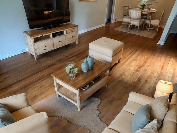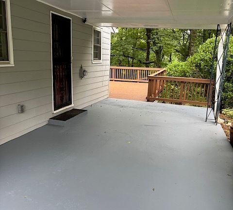 Great home located in neighborhood just minutes to major highways, downtown, midtown, Truist Park and shopping. This charming home has real hardwood flooring throughout except the kitchen and bathroom which are tiled. The living/dining room combination has a lot of natural lighting. Every window has a view of greenery outside. The kitchen has beautiful stained cabinets and granite countertop. Kitchen includes the gas stove, microwave, dishwasher, refrigerator plus a stacked washer and dryer in the pantry. The master bedroom has a double closet for storage, windows with blinds and hardwood flooring. Secondary bedrooms are ideal for another bedroom or office. Entertaining will be a delight with the huge freshly painted deck that overlooks the wooded back lawn. The house sits on an acre of land. There is a single carport to keep you dry on those rainy days or will make an ideal place to relax. There is a full unfinished basement with exterior access. The circular community is ideal for walking and is a stone's throw from the Whetstone Creek Trail.