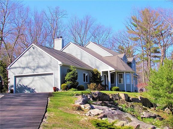 Adirondack-like property offers privacy, mountain views and amazing rock formations. The property borders 276-acre Depot Hill state land with trails throughout, including the Appalachian Trail. Close to Maybrook Rail Trail. Now, let's go inside! Filled with natural light, this beautiful home features a wonderful living room with floor to ceiling stone fireplace, hardwood floor. Spacious open concept dining room also has a hardwood floor and high ceiling. Fantastic kitchen features high ceilings and stunning, must-see dining area with wrap-around windows. Off the kitchen is a family room w/ hardwood and beautiful view. 1st Floor Primary Bedroom is lovely & large, offering an ensuite w/whirlpool tub, separate shower & walk-in closet. Upstairs are two bedrooms plus an office/guest room and full hall bath. 7-minute drive to the Village of Pawling, Metro North station (Harlem Line), fine & casual dining, quaint shops, Lakeside Park, Dutcher Golf Course, Daryl's House Music Club/Restaurant..
