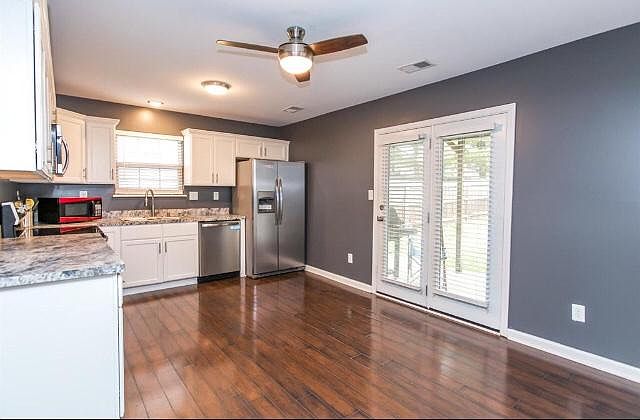 Two Bedroom - 2 1/2 bath twnhouse in North Pointe Sudivision. Newly remodeled with stainless steel appliances and laminate flooring throughout. Covered back patio and large fenced-in back yard. Storage room too! Pets allowed with deposit/fee. Short-term lease available. Text to schedule a tour. Tenant pays utilities and maintain ve lawn.