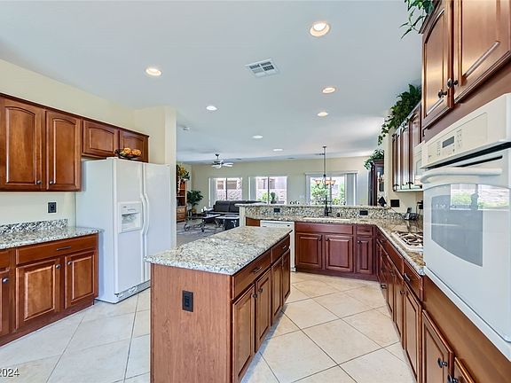 Welcome to this beautifully maintained single-story gem in Sun City Anthem master planned community! This 2 bed 2-bath home with den offers a perfect blend of comfort & style, with a spacious open floor plan that's ideal for both entertaining & everyday living. Remodeled driveway & courtyard complete with new pavers, exterior lighting, irrigation to new potted plants that stay, & gorgeous modern gates ($50k!)! Once inside, you'll be greeted by a completely repainted home, an inviting living area with natural light & elegant tile flooring throughout. The kitchen has granite countertops, ample cabinetry, breakfast bar, & area for small eat in kitchen dining. The primary suite is a retreat featuring large walk-in closet, door to backyard, & bathroom with dual sinks, separate tub & shower. The backyard is complete with a covered patio & gas bbq grill included! Plus-water softener, tankless water heater, smart irrigation, & smart garage door opener!