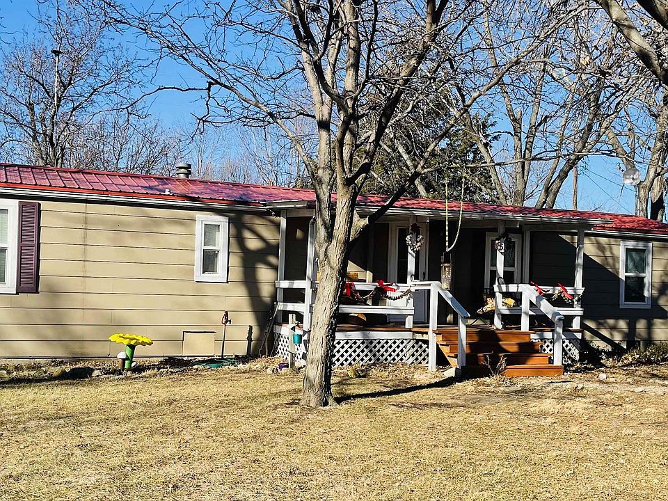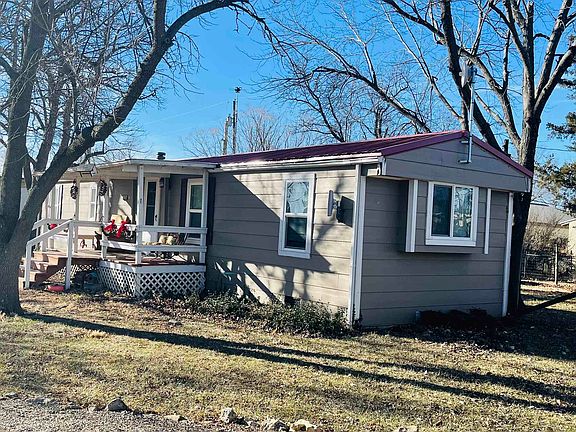 LAKE LIVING! Just 60 minutes from Wichita or Salina, less than an hours drive to El Dorado, McPherson or Emporia. You will love living at Marion Reservoir's Eastshore development! Enjoy hiking, boating and fishing just minutes to the water. This is a slow paced, quiet neighborhood where you will enjoy beautiful sunrises and sunsets as well as a variety of wildlife. Charming 2 bedroom 1.5 bath home at Marion Reservoir. Open floor plan with vaulted ceilings in the living and kitchen. New metal roof and insulation installed in the fall of 2022. Remodeled in 2008 to include new replacement windows, insulation, siding, flooring and updated bathroom with walk-in shower. Kitchen appliances included as well as washer dryer. Large 100 x 120 lot with fenced in backyard, 12 x 8 garden shed and 28 x 26 garage, with room to store your boat!