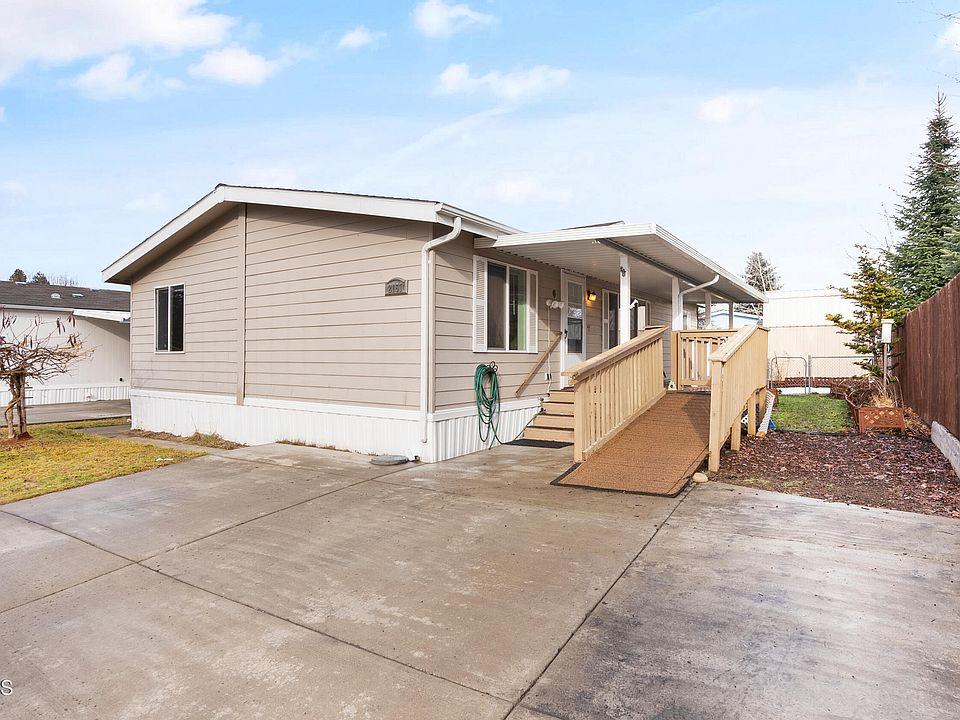 Welcome to this 3 bedroom, 2 bathroom Marlette home in Oak Crest! Enjoy an open floor plan, vaulted ceilings, laundry room, a primary suite and two covered porches for relaxing and entertaining! This home also provides a ramp with handrail from the driveway to the front door and a step in primary shower with grab bars. Two large storage sheds are in the backyard for all your storage needs. All Oak Crest community amenities included with lot rent. Reach out to schedule a showing today!
