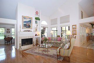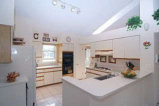 So much glamor for the price! The spectacular open flow of this 1 level living home gives you vaulted ceilings in the livrm with fireplace, dinrm & kit with lrg eating area. Many hardwd flrs. Great master suite, den & enclos. sun room all overlook private yard. Multilevel party deck, large fin basement w possble 4th bedrm, wet bar & full bath. Brick extior & landscaping gives great curb appeal. Don't miss this one!