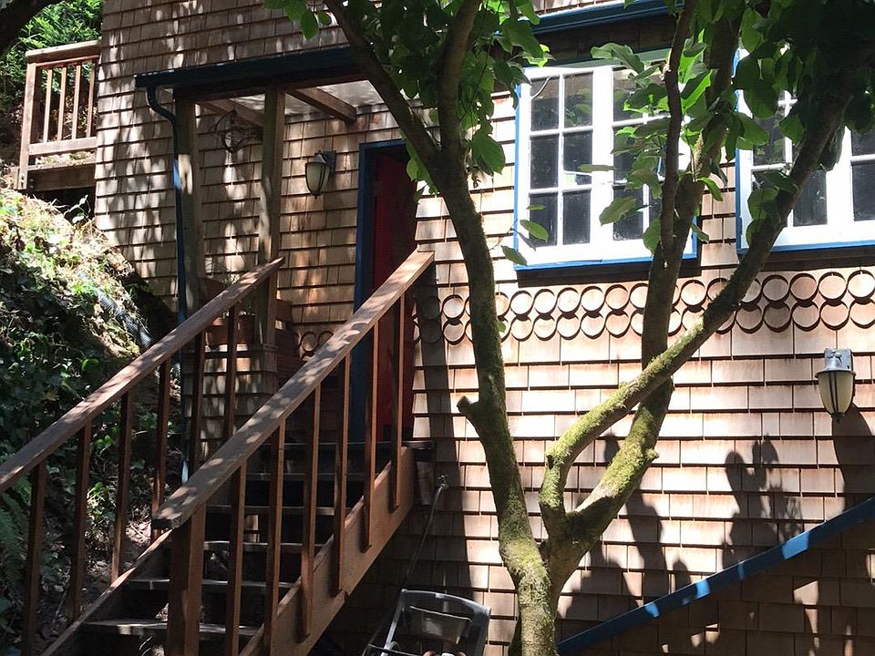 Lovely 3 bedroom 1 bathroom hillside retreat! Remodeled vintage brown shingle Craftsman. Windows with stained glass artistry lovingly embedded. Pathways wind to forest AND a sunny deck. Bamboo floors. Skylights galore. Circular staircase to the 3rd bedroom. Light filled Bedrooms. Library space for all your personal treasures. Double lot with deck and discreet spaces. Private. Quirky, charming, and quaint. Short walk to Monte Rio Beach. Wi-Fi ready. Major appliances with washer and dryer included. Please do not disturb current tenants. Available Mid-August 2018 Security deposit $3,500. Month to month leasing option with subject to change to 6 months to 1 year. Credit processing fee of $35 per person. All utilities to be paid by tenant, except water and garbage. Pets are negotiable. No Smoking. No drugs. No Prop 215 cultivation.