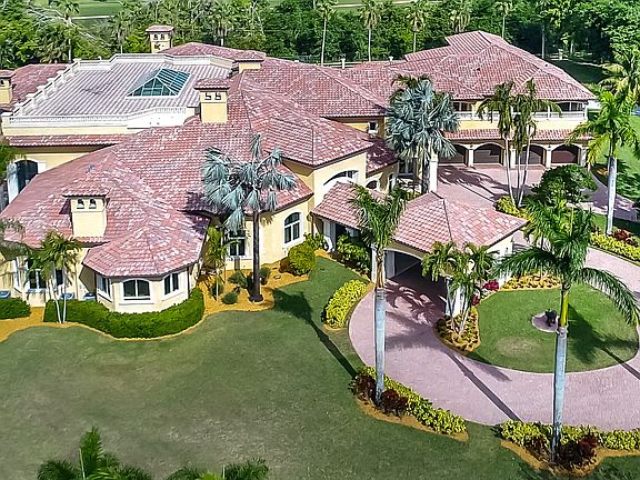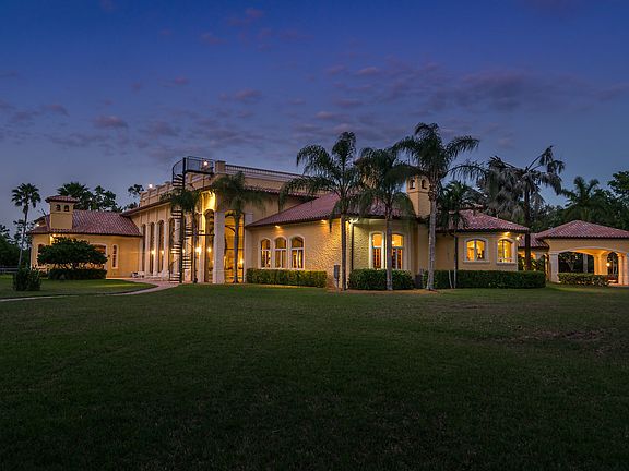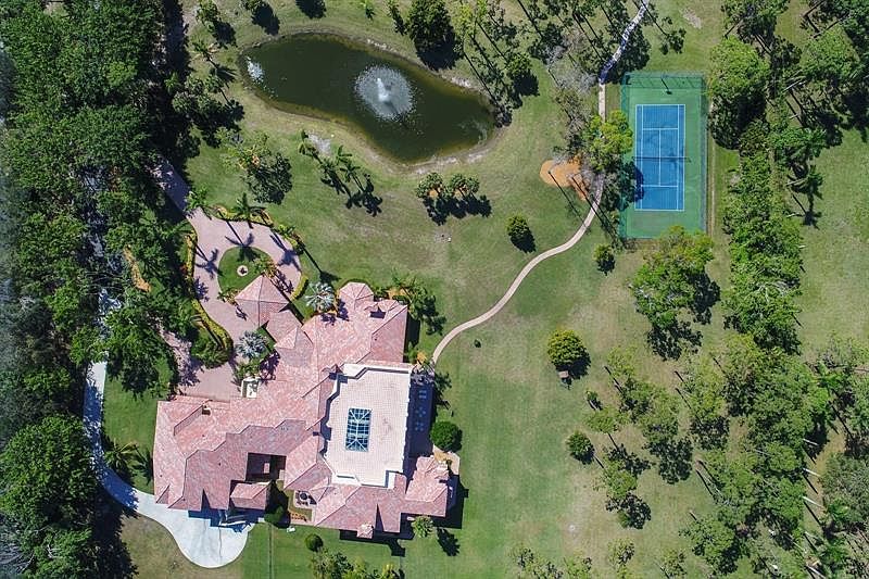 REMARKABLE estate in Boca Raton: 20,000+sqft Mediterranean home on 6.5acre gated estate. Overlooking private pond with 20’ fountain, tennis court, & equestrian stables. Port cochere entryway leads to grand entrance w inlaid marble hallways. Ceilings heights are 11.5'&24' throughout. Huge master suite w adjacent exercise room. Magnificent 2story office/library, 2nd beautifully decorated office, billiard room, 10 seat theater & 8 car garage. 2,500 sqft Pool Atrium thru folding glass doors from all primary rooms w salt-water-colored-light pool&Jacuzzi. Hollywood style marble grand staircase; elevator to 2,000 sqft Sun deck. Guest Quarters feature 3BRs+den, 3baths, living & dining room, Kitchen, Laundry & private entry. Separate Caretakers Quarters.