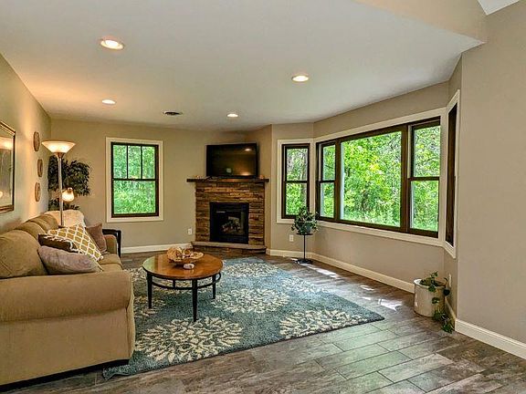Discover the perfect blend of tranquility and modern living in this exceptional property. Nestled among oak trees and adjacent to over 100 acres of meadows, ponds, and forests, this serene and peaceful neighborhood offers the ideal retreat, and yet has convenient access to highway 10 and 169. Open layout, beautifully updated, and meticulously maintained. The kitchen shines with granite counters, enameled maple cabinets, and stainless appliances. Luxurious porcelain tile floors with cozy in-floor heating throughout, ensure comfort and style in every season. The layout is perfect for main floor living with no steps required. Sunlight floods the main floor of this welcoming space. You’re protected by a brand new roof, and the convenience of fiber Internet.