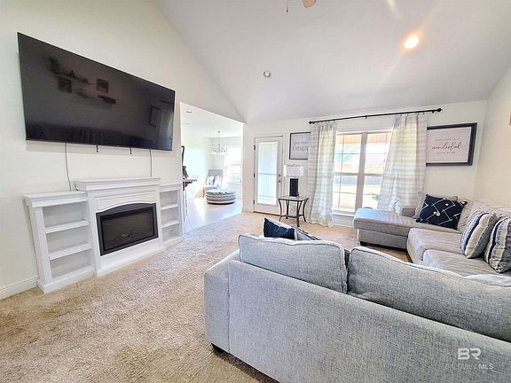 LOCATION! LOCATION! LOCATION! Looking for a community with NO HOA? You just found it!!! This lovely 3 Bedroom 2 Bath Brick home has a large yard!! As you walk into the door, you'll notice the open living room with the beautiful fireplace (does not convey). Large primary bedroom! Walk in pantry! Large primary bathroom with double vanity, his and her sinks, and 2 walk in closets!! A covered enclosed 11x15 patio! Large back yard!! Located aprx 15 minutes from I-10 and apx 25 minutes to Gulf Shores beach.