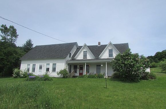 lovely West Glover farmhouse (Andersonville) on 10 acres. Bright warm kitchen with hardwood floors and cabinets, antique tin cieling, wood stove. Full bath off kitchen, side mud room with stackable washer/dryer. Utility room insulated but not heated. Has back stairs to second floor. Exposed beam cieling in front den and larger front living room. first floor bedroom and sowing room. Second floor landing with master bedroom and 2 closets, Full hall bath, smaller second bedroom w/closet, Third at end of hall. Forth room with cathedral cieling and finished but not heated. Back stairs entry. House has newer poured foundation OHW heat, newer wiring and plumbing. There is a lovely front porch off kitchen towards view. Small attached shed at end of home. Property is mostly open with fields and pasture rising behind the house.