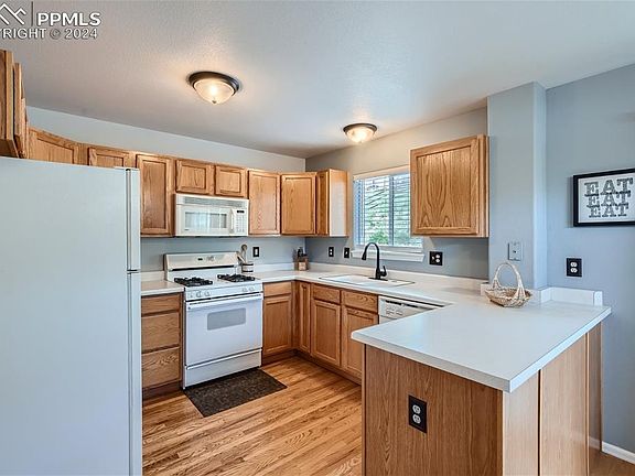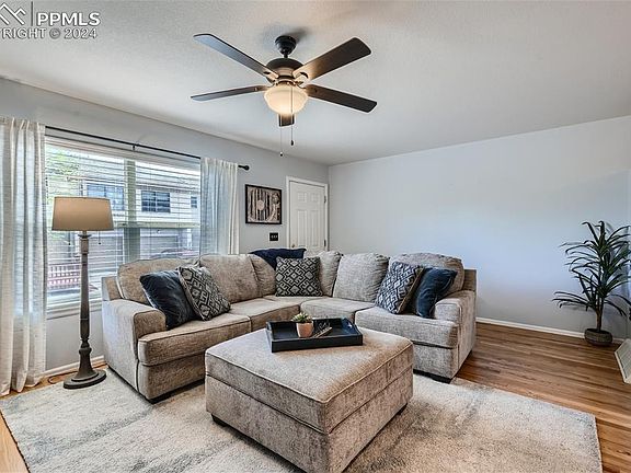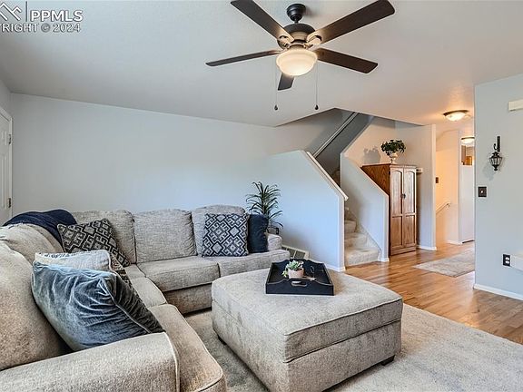 Step into the heart of Rockrimmon and discover a townhome that perfectly balances modern luxury with Colorado’s breathtaking natural beauty. This exceptional end-unit residence, featuring four bedrooms and three bathrooms, exudes charm and sophistication. The generous oversized one-car garage adds to its allure, providing both convenience and style. Upon entering, you’re greeted by a meticulously designed floor plan that harmoniously blends expansive living spaces with intimate retreats. The stylish living room, with its eye-catching corner fireplace and natural wood flooring, invites relaxation and elegant gatherings. The kitchen, a culinary enthusiast’s dream, is host to ample cabinetry, a versatile breakfast bar, and a welcoming eat-in dining area ideal for both everyday meals and entertaining guests. Every corner of this home is crafted to offer serene mountain and bluff views, encapsulating the essence of Colorado living. The four spacious bedrooms provide a perfect sanctuary, while the adjacent bathrooms reflect thoughtful design and functionality. The primary bedroom offers a light and spacious retreat, with dual closets and bespoke details throughout to elevate the space. The in-unit laundry enhances practicality, while the private back patio seamlessly extends the living area outdoors. Idyllically placed in the coveted Rockrimmon area, this townhome offers unparalleled access to outdoor adventures at Ute Valley Park, premier shopping and dining options, and top-rated District 20 schools. The proximity to I-25 ensures effortless commuting, enhancing the convenience of this prime location. Embrace the ultimate Colorado lifestyle in a home that is as stunning as its surroundings. Schedule your private showing today and make this distinguished townhome your own.