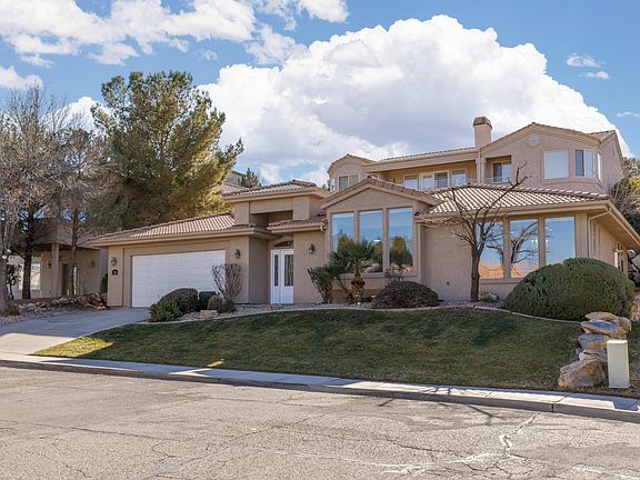 Mountain Views you have to see to believe! Big windows in Great room and Dining room to enjoy the views. Freshly painted interior. NEW sculptured carpet. NEW quartz countertops and NEW fixtures in Kitchen and bathrooms. Spacious entry with lovely tile detail. Tall ceilings with NEW fans with lights, all on wall controls. Primary Suite has separate tub and shower, 2 sinks with new Quartz counters, wall mirror, and walk-in closet in the bedroom. Laundry room has cabinets, a shelf and a large linen closet. Convenient location close to downtown St George, Southgate Golf Course, parks and walking trails along the river. Close to new retail and restaurants. Relax in the community indoor and outdoor Pool. Keep fit with exercise equipment in the clubhouse. HOA covers your water, garbage, lawn roads and there is a common area grassy lawn near clubhouse.