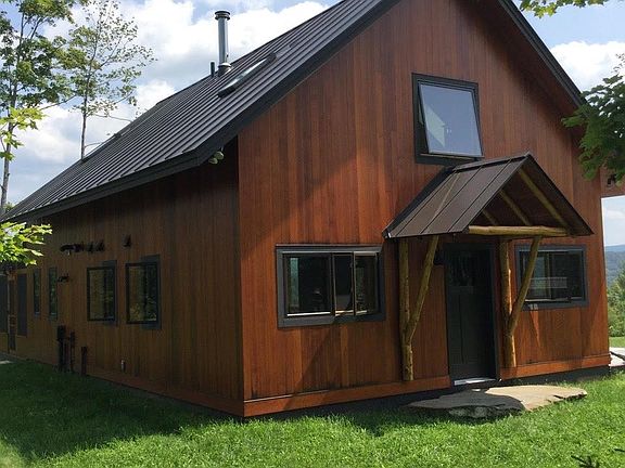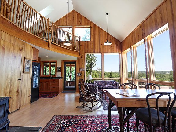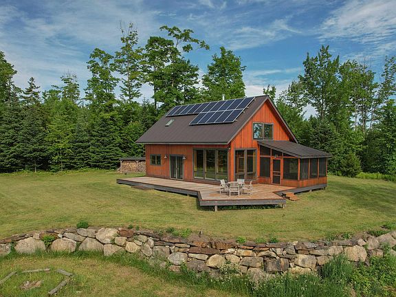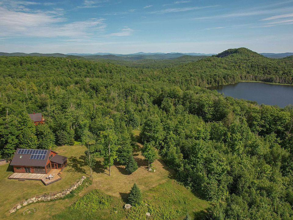 Exceptional off-the-grid home on 82 acres of pristine Vermont countryside with a gorgeous view offers a quintessential Vermont living experience. The residence boasts a remarkable combination of both exquisite aesthetics & energy efficiency, setting a new standard for comfortable & eco-friendly living. Equipped with a 3.75 KW solar system, complemented by passive solar elements and high-efficiency double stud construction, these features not only minimize your carbon footprint but also ensure a harmonious balance between nature & modern living. Step inside & be greeted by an inviting open living space adorned with a soaring cathedral ceiling, custom wood details & tall windows showcasing the gorgeous view. A central wood stove creates a cozy atmosphere, while the adjoining kitchen, living room, dining area, screened porch & large deck offer seamless flow for entertaining. A library, bedroom and bath complete the main level. The second level is a versatile loft area that encompasses a bedroom, ample storage space, & a comfortable sitting area. Adding to the property's appeal, a 24 x 38 garage exudes a charming barn aesthetic & includes a heated 12 x 24 workshop, providing ample room for projects. The expansive 82-acre lot encompasses a lovely yard adorned with perennial gardens, blueberry & raspberry bushes, while a wild apple orchard graces the lower field. This property border state land & very close to Coits Pond.